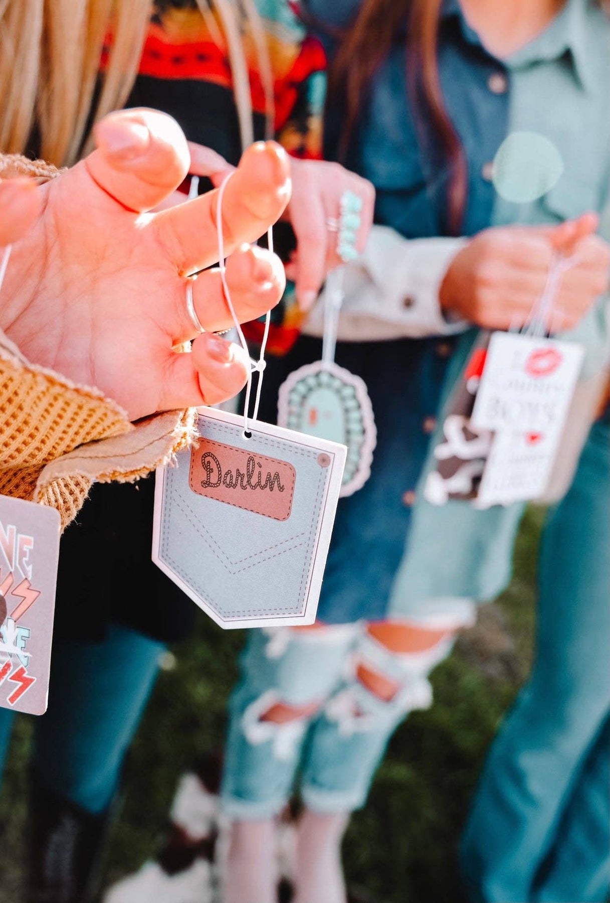 Darlin Air Freshener Here is how we make our air fresheners: 1. Print the designs (Front side and back side): 2. Make cutting model and cut the custom shape: 3. Thread the rope: 4. Perfume the scent: 5. Pack the air fresheners in a plastic bag and seal: 6. Attach the bag to our branded card: 7. Pack & ship the air fresheners to you!