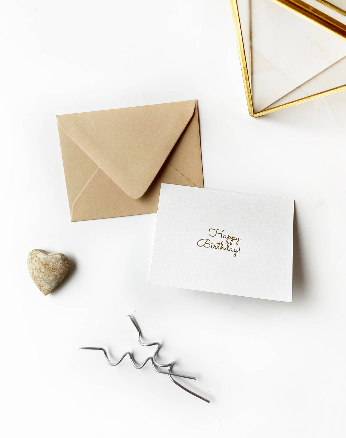 Let someone know they are loved with this sweet foil-embossed Happy Birthday greeting card! Adorned with a festive "Happy Birthday!" illustration in your foil press color of choice on the front side, this blank, folding, heavyweight A2 ivory note card and kraft or ivory envelope adds the perfect celebratory touch. Note card size when folded is 4.5" x 5.5" (A2) and comes with a euro-flap (pointed) matte kraft or ivory envelope, both sealed inside of a resealable A2 cello envelope. Each card is embossed with foil to order in our studio. As always, well-designed and well-crafted. Made by Studio Portmanteau in Grants Pass, Oregon, USA