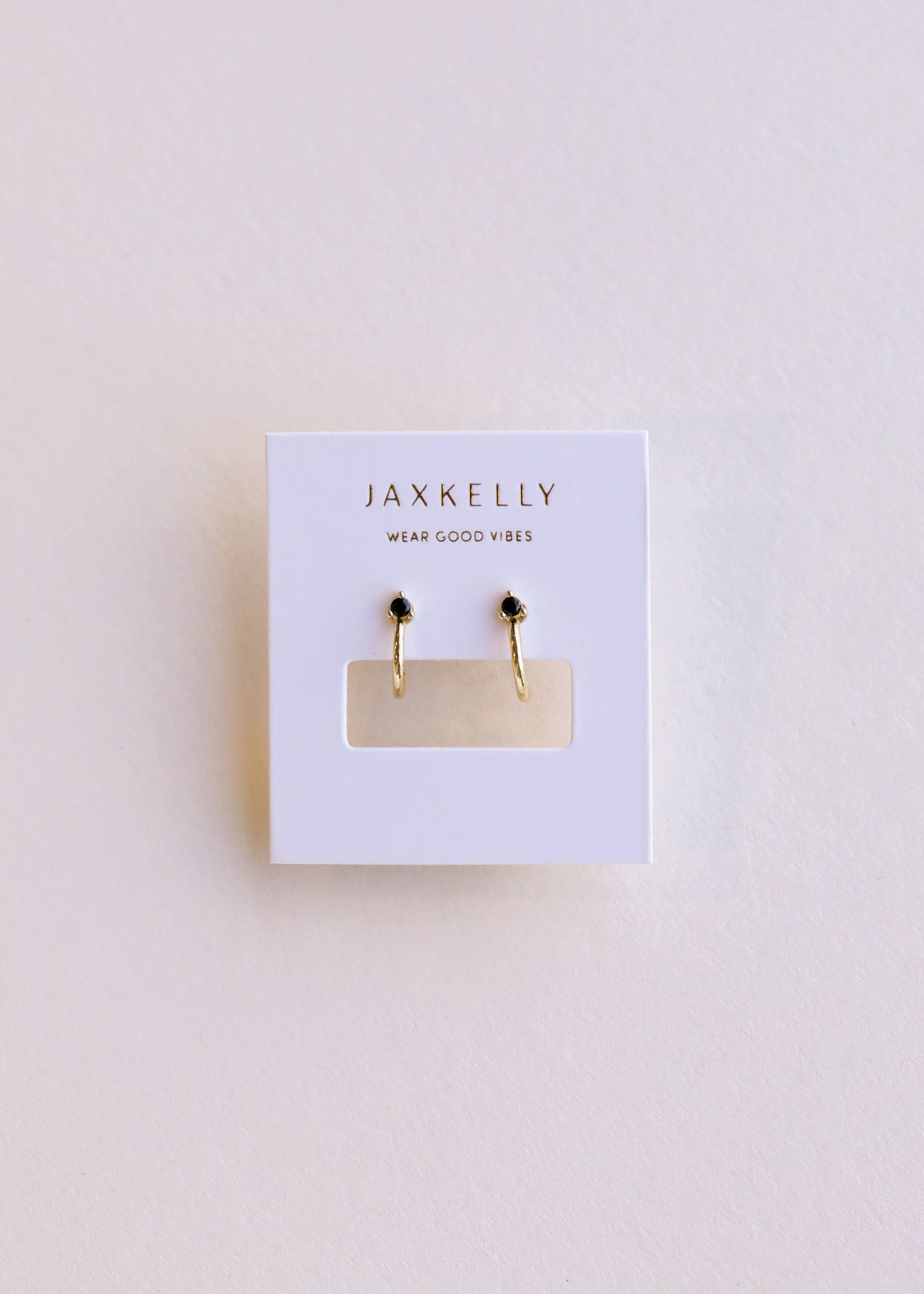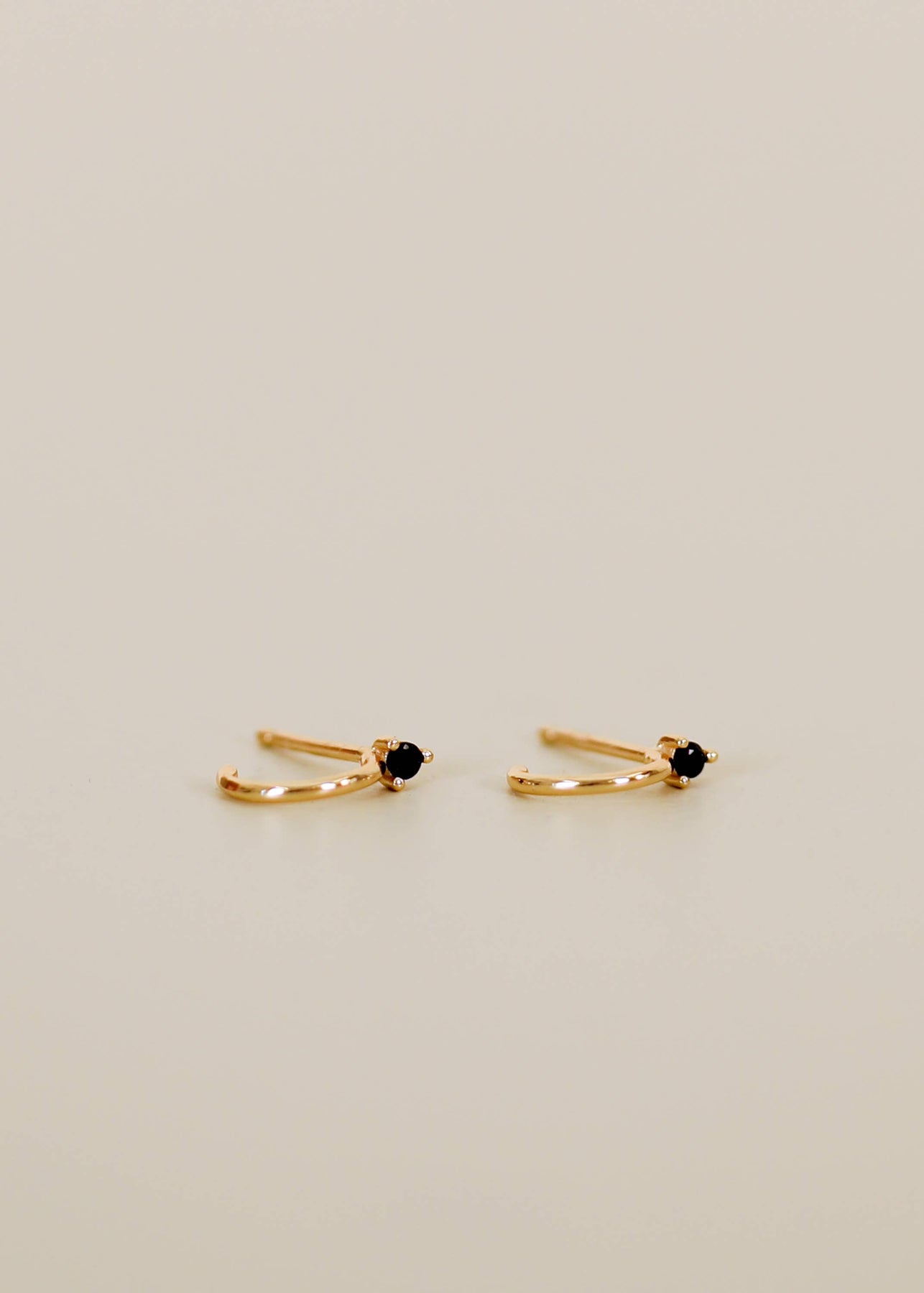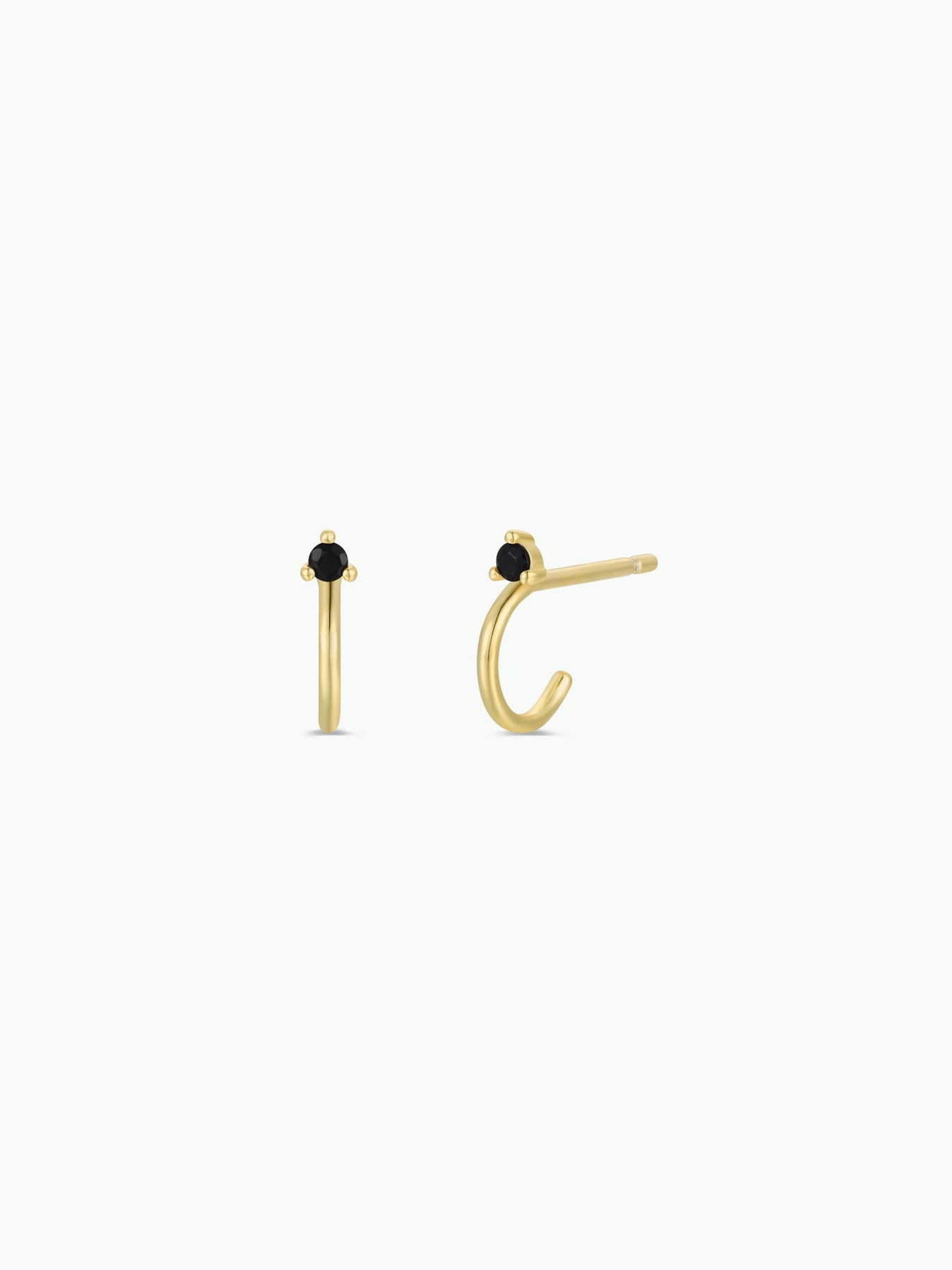 Our smallest hoop earring features a straight-back post with a mini cz that adds a pop of color. The hoop hugs the ear and can be worn anywhere. Tarnish Free - Long lasting protective coating safeguarding your jewelry from sweat, water, and more. Sterling Silver Posts – Gold plating over brass Hypoallergenic – Lead Free Black CZ stone 2mm stone 7mm hoop opening