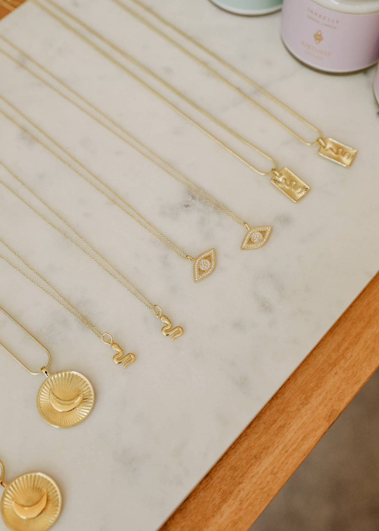 Snakes stand for creative life force, a representation of healing and transformative energy - something we want to bring to your everyday wellness journey. Tarnish Free - Long lasting protective coating safeguarding your jewelry from sweat, water, and more. 5x more gold that standard 18k gold plating over brass Hypoallergenic – Lead Free Cubic Zirconia Charm Approx. 15mm length 16 inch chain length with 2 inch chain extender